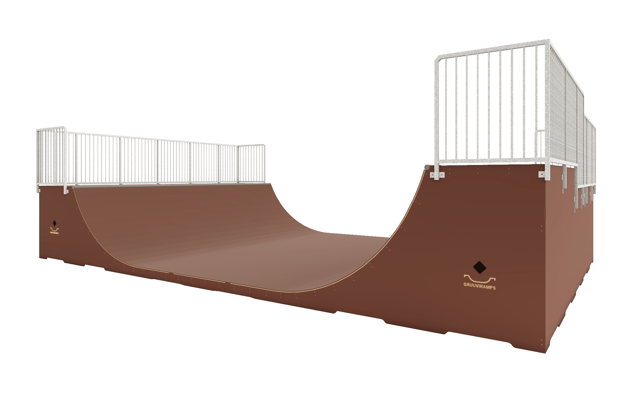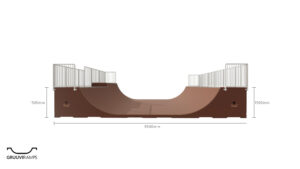 - Minirambi horisontaal- ja raadiustega pindade üleminekutes on mõlemal pool rampi copingud, mille otstesse on paigaldatud kaitseks torukorgid.
