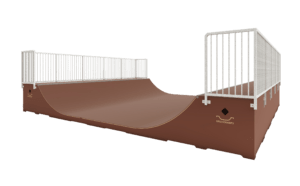 - Minirambi horisontaal- ja raadiustega pindade üleminekutes on mõlemal pool rampi copingud, mille otstesse on paigaldatud kaitseks torukorgid.